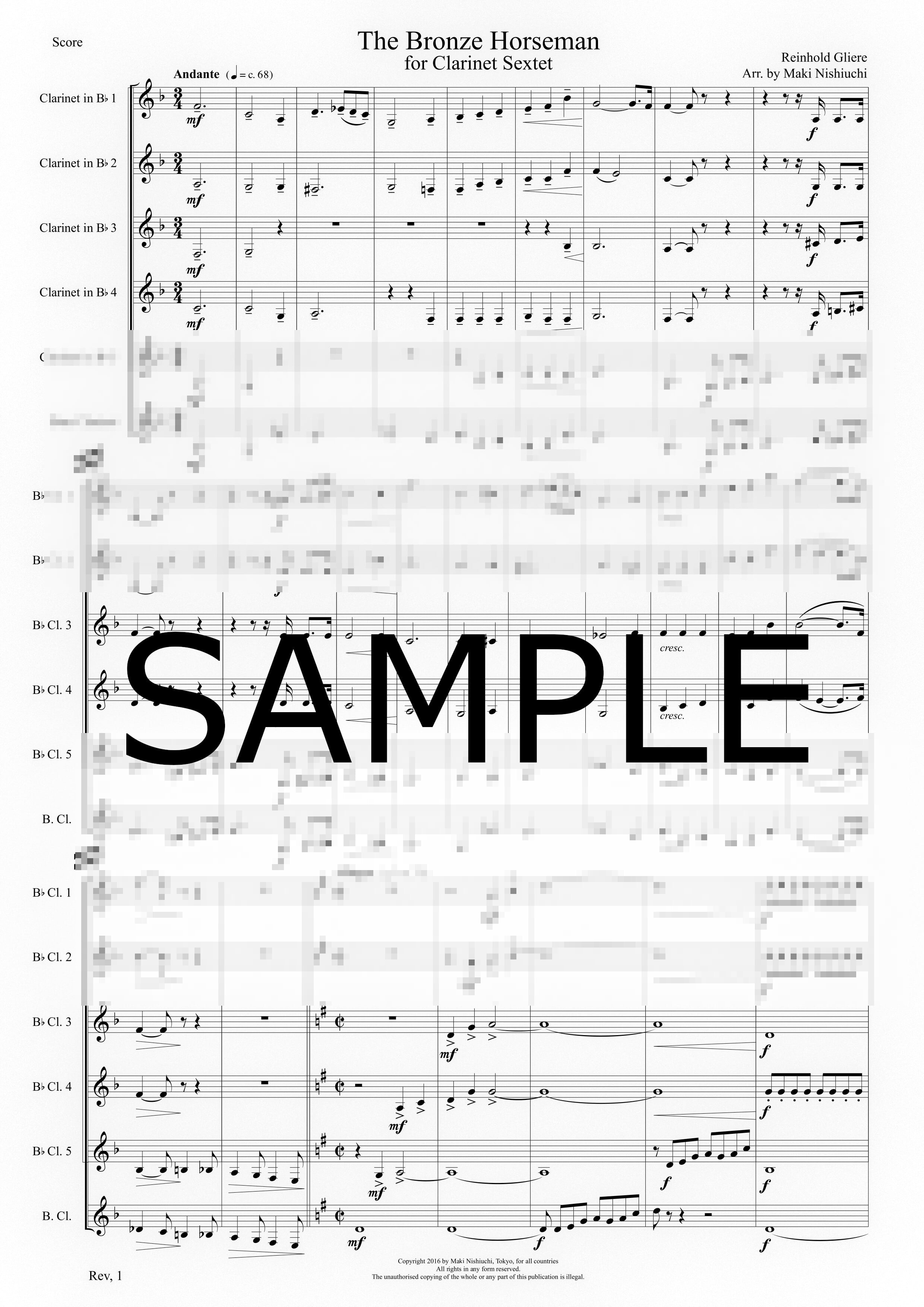 グリエールのバレエ音楽「青銅の騎士」からクラリネット六重奏用に編曲しました。